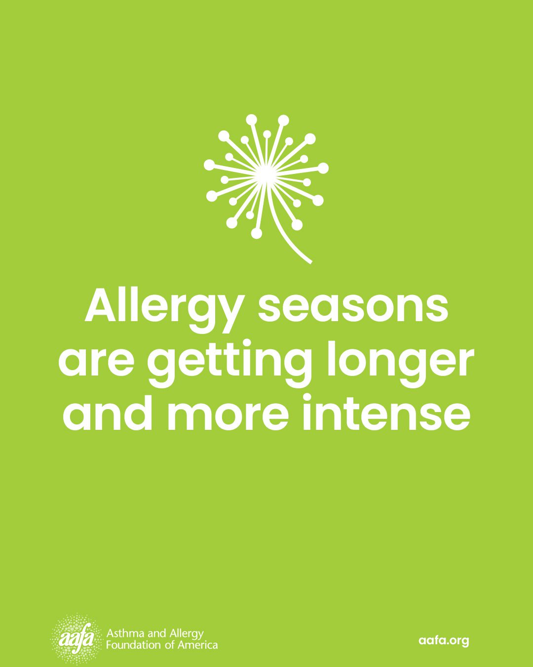 Washington, DC, April 09, 2026 (GLOBE NEWSWIRE) — The Asthma and Allergy Foundation of America’s (AAFA) 2026 Allergy Capitals® report notes that people with seasonal pollen allergies may experience longer-lasting, more intense allergy symptoms as pollen seasons across the U.S. start earlier and last longer, and more pollen is released. Pollen allergies are associated with disruptions in sleep, missed work and school days, and worsening of allergic rhinitis, asthma, eczema, nasal polyps, and other inflammatory conditions. The report provides practical tips to help improve symptom management and quality of life.